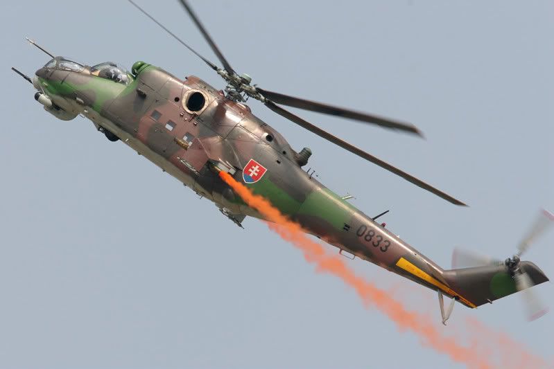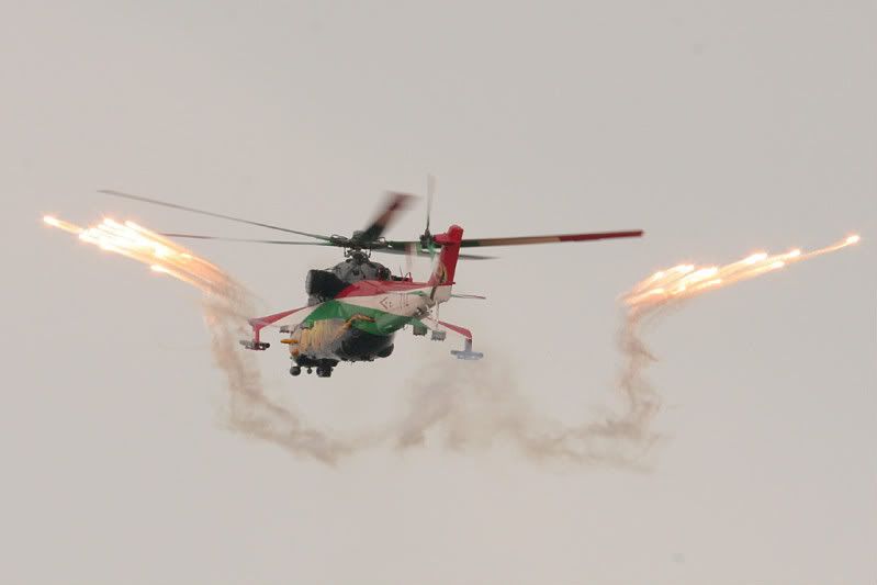 Seen here is a PC-9 of the Croatians and a Mi-24 V Hind of the Hungarian airforce during their display.