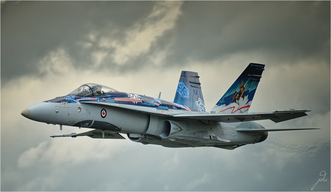 - Jim Mumaws CF-18 kept the judges busy. One judge stated the pilot was just showing off for the backseater. In the end, the majority agreed it didn't really matter why the pilot put his jet into this steep angle, the streamers from the G's told a story, and we were glad Jim was there to capture it.