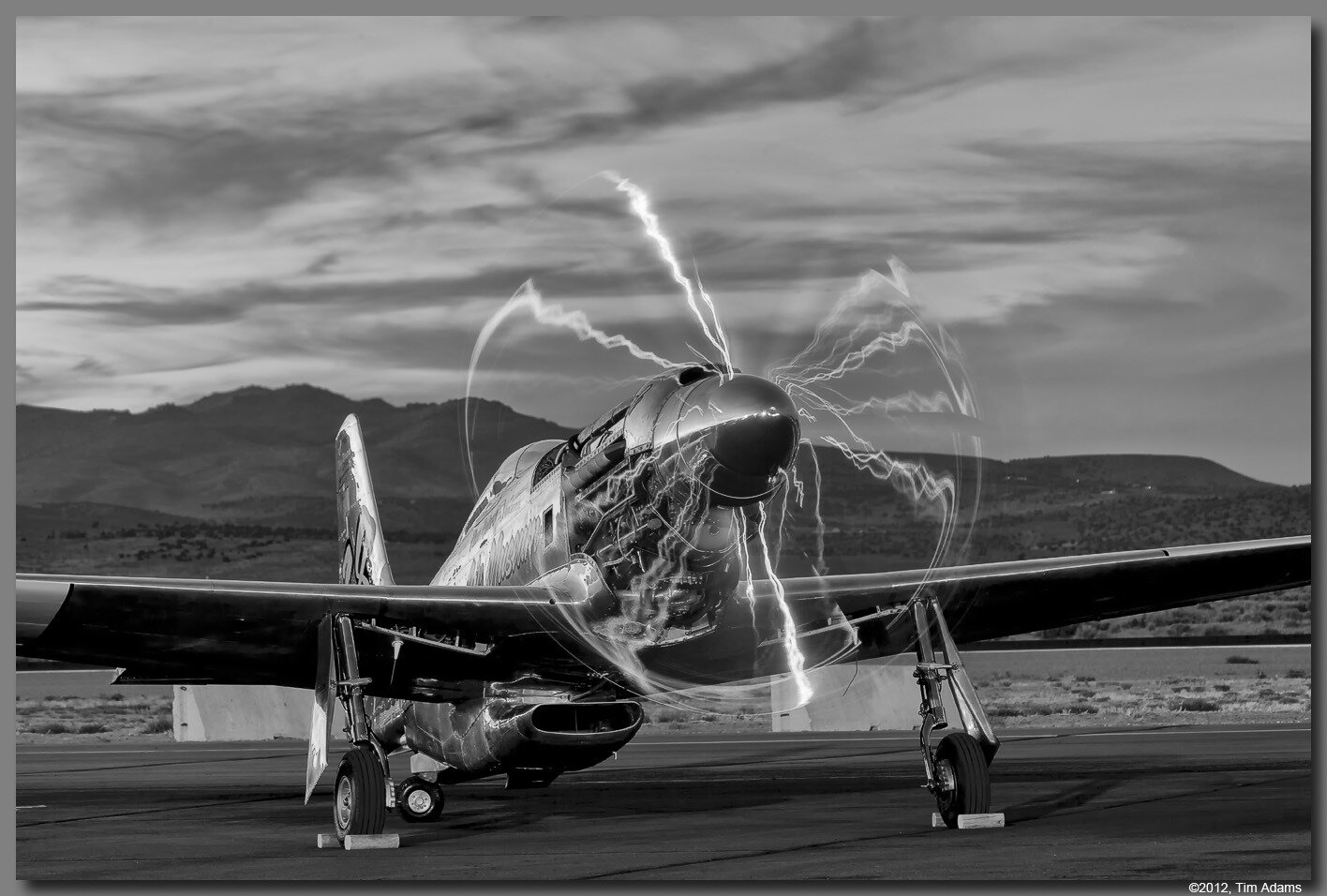 Finally, the judges were unanimous in finding things to love about Tim Adams' gorgeous shot of Precious Metal doing an engine run at Reno after sunset. Many other photographers got this shot, but Tim's black and white treatment makes the light and the details the stars of the image, rather than the colors. The "lightning" effect of the ramp lights reflecting off the counter-rotating props really caught the attention of the judges, as did the nose-to-tail sharpness, the details of the engine seen through the dual prop discs, and the balanced exposure under less-than-ideal shooting conditions.