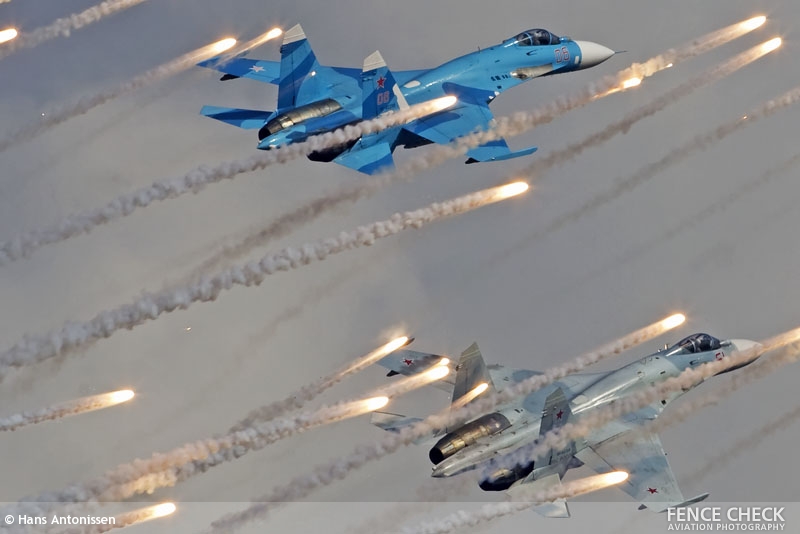 Hans Antonissens shot of two Su-27 Flankers popping flares at the Zhukovsky, Russia airshow is next. There is a manic quality to the shot, but ultimately the image captures the frantic, violent world of modern air combat. While the judges noted that there is almost too much subject matter for the eye to take in, the wealth of movement and energy in the image is precisely what makes the shot so compellingas if the Flankers actually were on the receiving end of live fire at the moment the shutter was released.