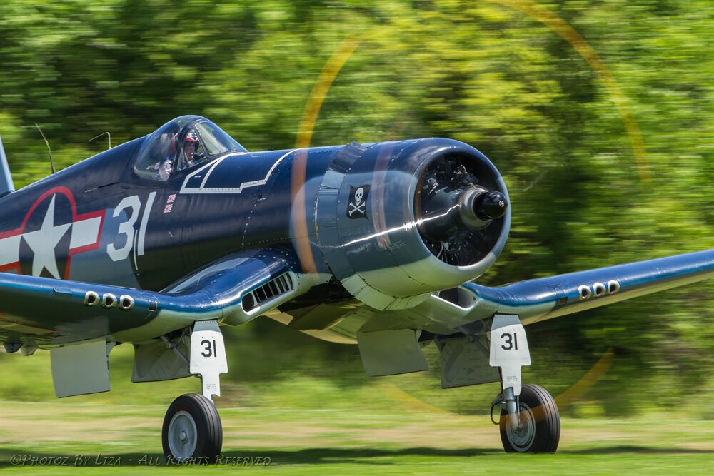 The basso rumble of a Double Wasp piston engine. The angry hissing of air sliced by triple blades. You glance up just in time to see the Jolly Roger pass over ahead. Youre reminded that some Corsairs fight for freedom. Congrats to the site administrator, Liza Eckardt, who captured this Goodyear FG-1 Corsair just after takeoff, in the first of our May Photos of the Month (below right). Her great panning skills create a dynamic sense of motion in the image. Its tightly framed, taking us right up next to this majestic warbird, and showing all the glorious detail of this fabled airplane. [Forum Link]