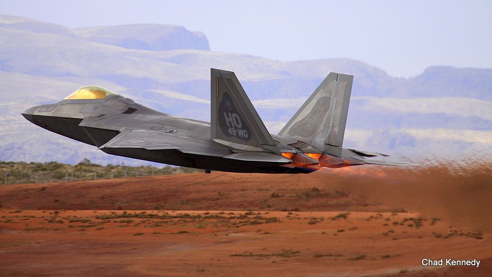 - Chad Kennedys F-22 Raptor take off from this years St. George, Utah, airshow was another judge favorite. The desert background is fantastic and provided the pop while the afterburner flame brought the Raptor to life.