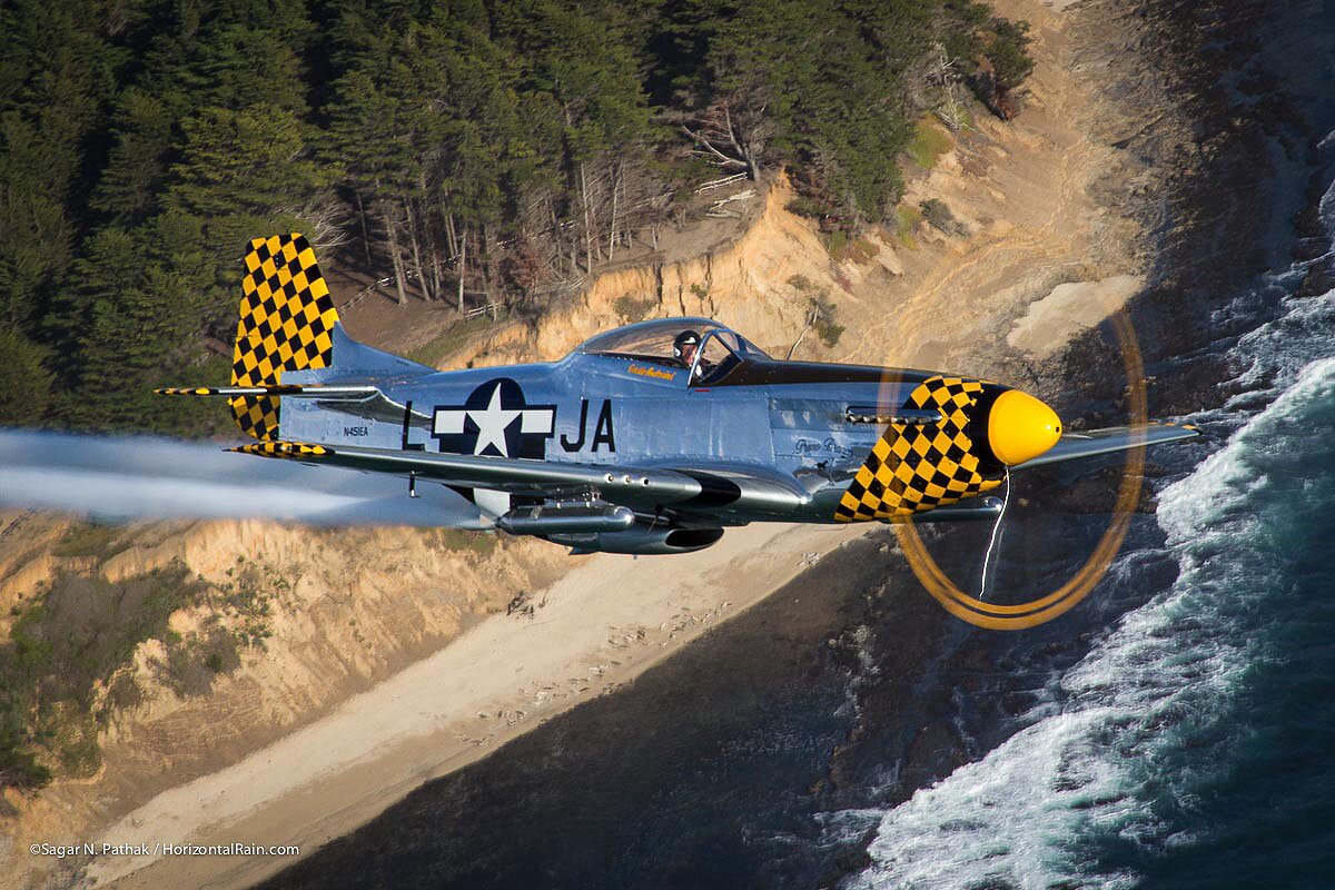 Our overwhelming favorite was Glen Tagami's simple, yet refreshing, air-to-air photo of an F4U-4 Corsair (below right). "A beautiful shot of a legendary bird" and "I am just jealous looking at this one" were a couple of the comments from members who nominated it. Given the composition, lighting, sharpness, blur in all the right places, and just enough beautiful scenic background to ground the shot, its easy to be jealous and impressed by Glens handiwork. All four judges made this photo a first-round draft pick. [Forum link]