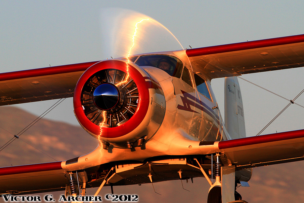 -Below left, Victor Archers Staggerwing shot from the Cable airshow was unanimously the judgess favorite. For us it "ticked all the boxes:" the warm lighting, tight crop, sharpness, and that fantastic prop blur.