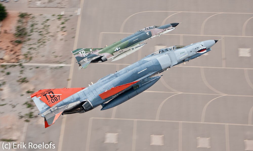 - Above, Kevin Joyces unique angle on Greg Shelton and Ashley Battles barrel-rolling their way over the MCAS Yuma airshow [Forum Link];