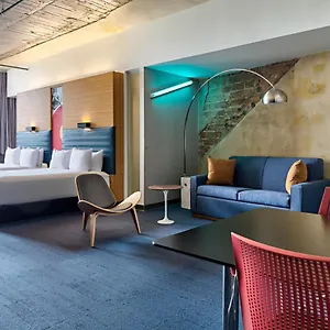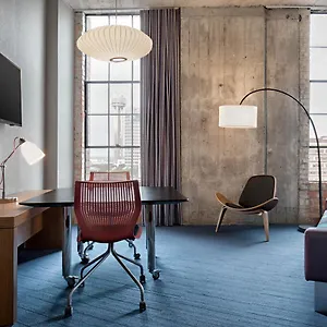 Aloft Dallas Downtown hotel offers 193 rooms, some of them feature complimentary Wi-Fi and a flat-screen TV with satellite channels, as well as comforts such as ironing facilities and air conditioning. They are also complete with coffee and tea making facilities, and a refrigerator. The private bathrooms are fitted with a hair dryer and shower caps.